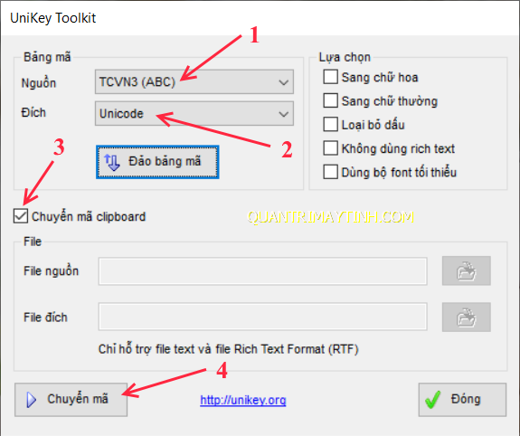 - Đánh dấu tích vào ô Chuyển mã clipboard